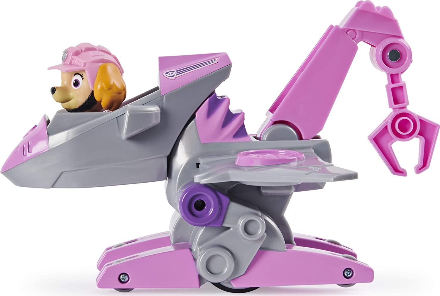 - Figura coleccionable de cielo: con su uniforme de rescate Dino rosa, coloca a Skye detrás de la rueda de su vehículo de lujo. Este cachorro está listo para aventuras prehistóricas!