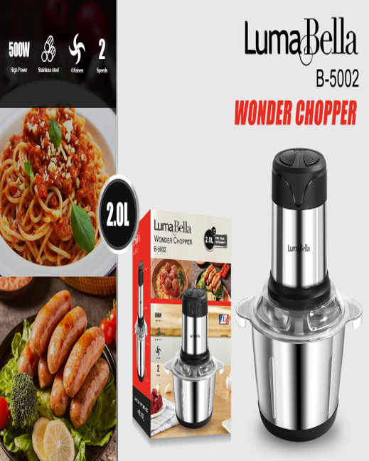 La Luma Bella B-5002 es una licuadora y picadora multifuncional, diseñada para ofrecer potencia y eficiencia en una presentación compacta y fácil de usar. Ideal para quienes buscan practicidad en la cocina sin renunciar al rendimiento.