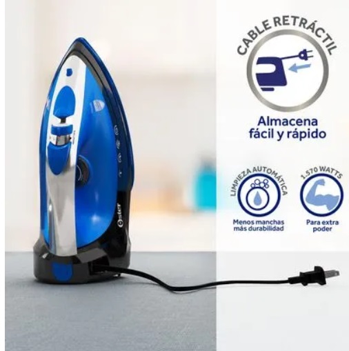 Plancha de Vapor Oster® con Cable Retráctil y Golpe de Vapor, Azul,