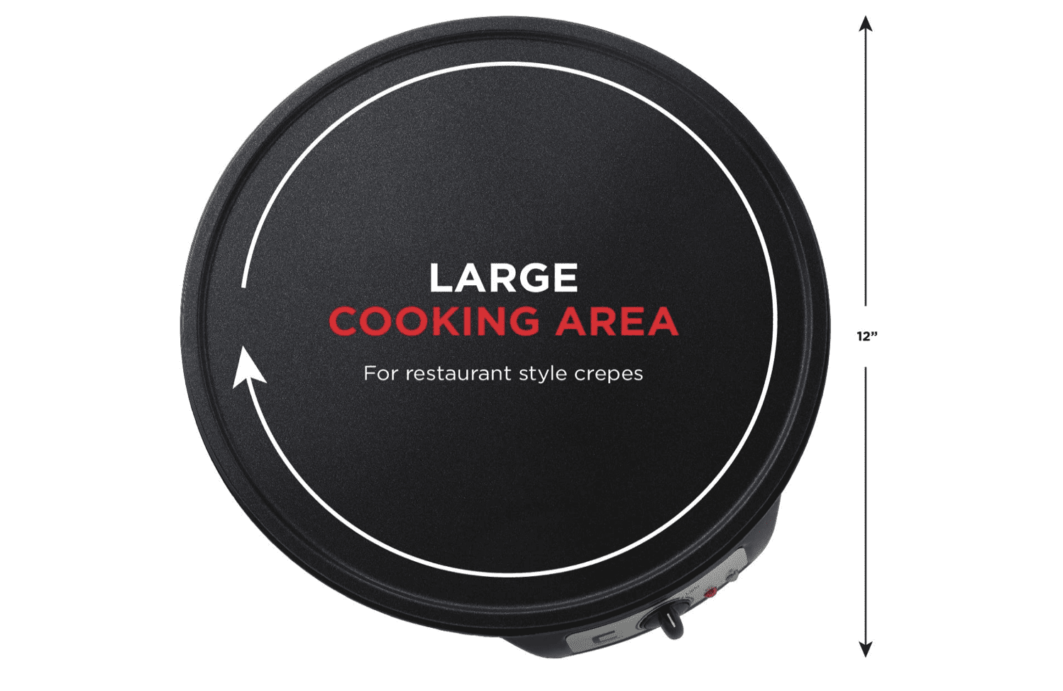 Plancha y crepera antiadherente de 12 pulgadas, con control de temperatura preciso para perfectas crepas, crepas finas, hotcakes, huevos, beicon y más, incluye esparcidor de manteca y espátula