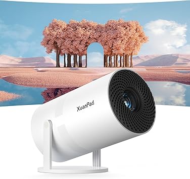 Proyector portátil XuanPad con sistema Android, miniproyector con enfoque eléctrico, WiFi 6 y Bluetooth, corrección vertical automática, FULL HD 1080P, proyector de películas giratorio a 180° para