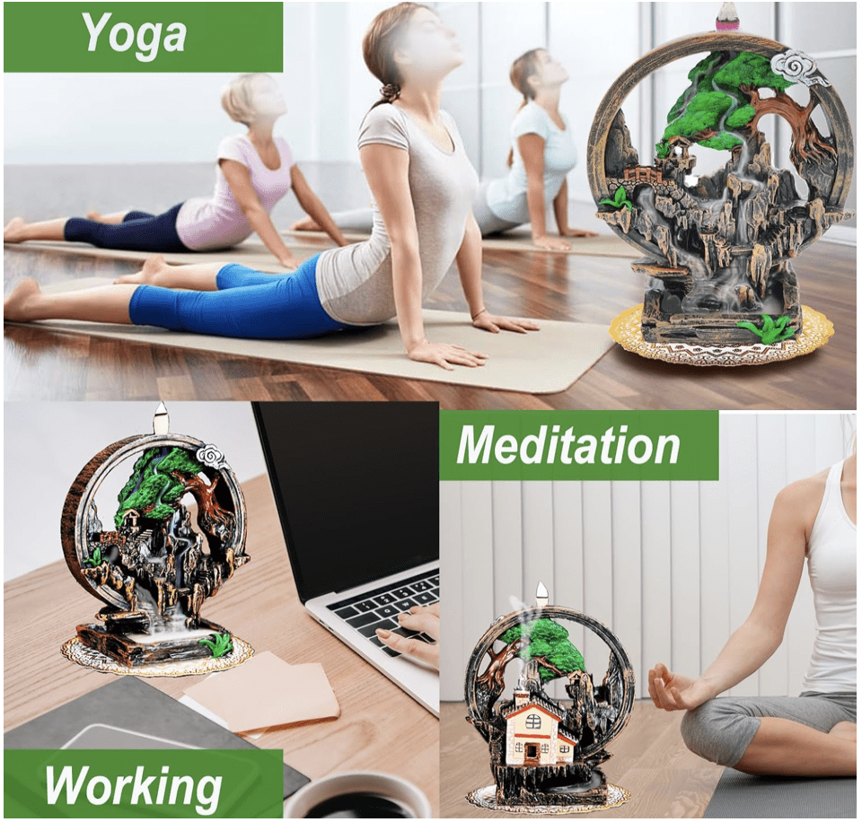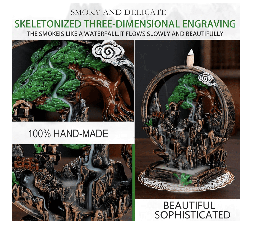 - ❤【Diseño único】: nuestro quemador de incienso en cascada es un soporte de incienso de dos caras que tiene expresiones de humo de cascada y fuente de chimenea.