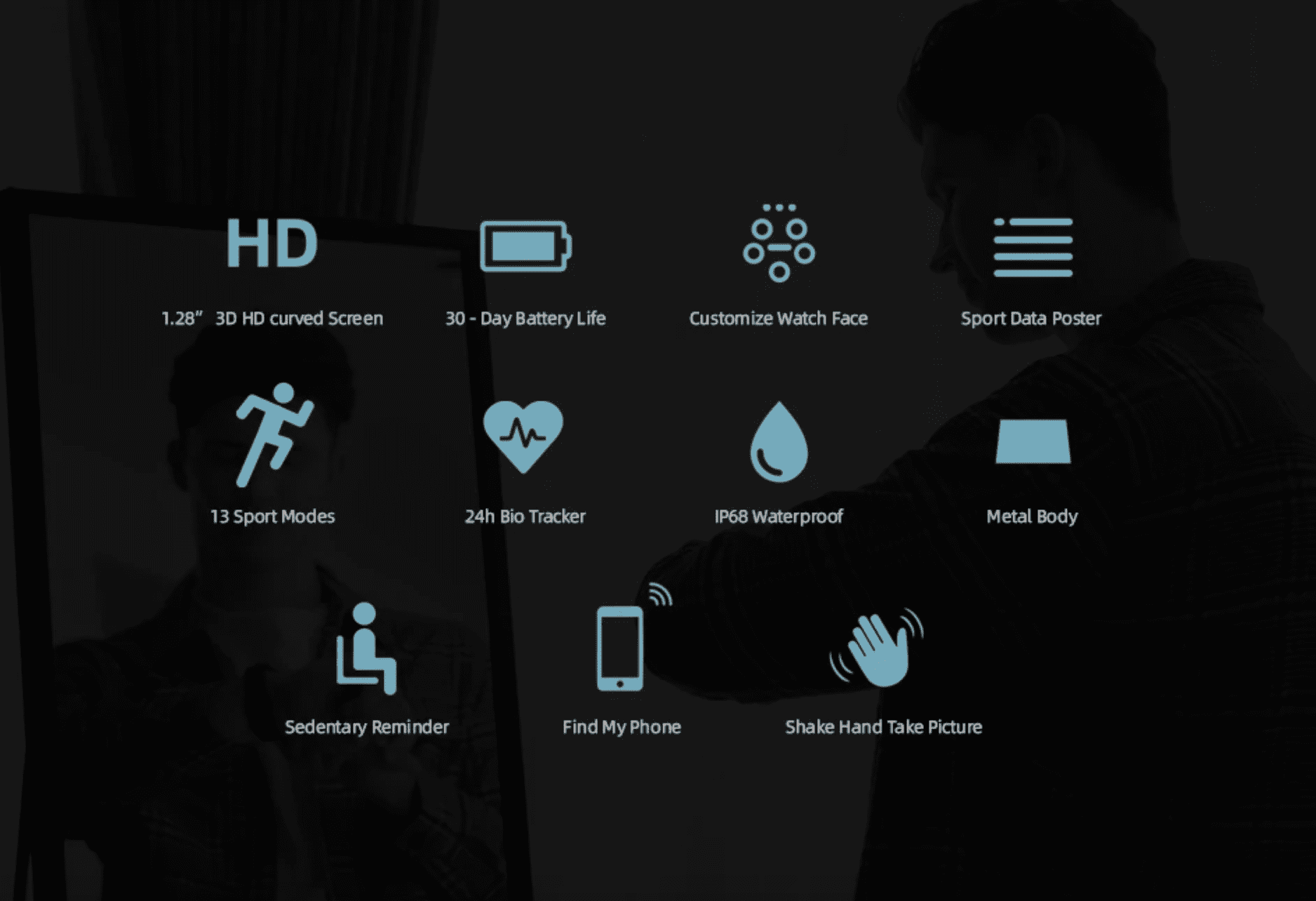 Versión Bluetooth V5.0 Pantalla táctil Pantalla táctil capacitiva Compatibilidad Android 5.1 o superior IOS 9.0 o superior Definición 240×240 Píxeles Pantalla TFT de 1,28 pulgadas A prueba de agua y polvo IP68 Temperatura de funcionamiento -20-45 ℃ Duración de la batería 30 días Cargador Cable de carga magnético Capacidad de la batería 340 mAh Peso (con correa) 54g La sincronización de datos podría cargarse en la aplicación para analizar
