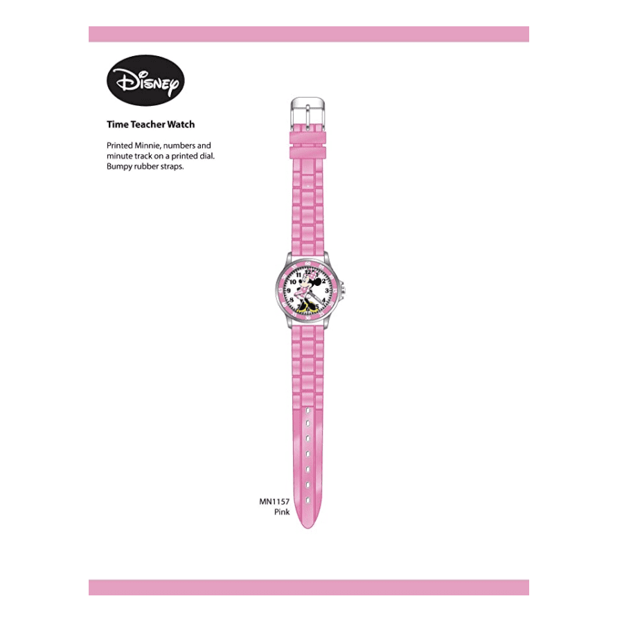 Reloj rosa de Minnie Mouse Disney MN1157 con malla de goma para niños