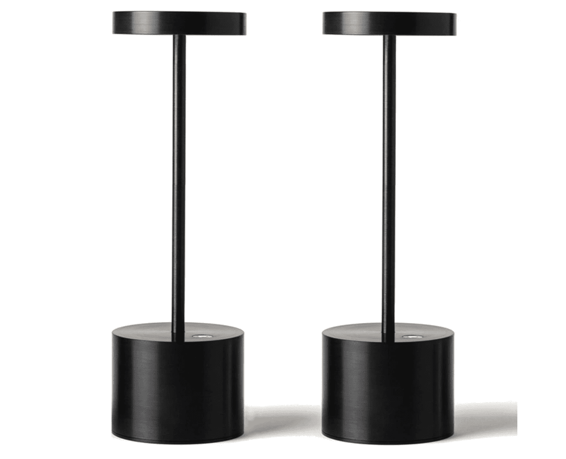 SAKRINGT Paquete de 2 lámparas de mesa recargables, lámpara LED de escritorio inalámbrica, luz de mesa portátil a batería de 5000 mAh, atenuación continua de 3 colores hasta 40 horas de uso para restaurante/interior/exterior (negro)