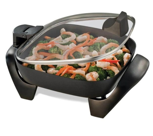 - Cocina más rápido, asa y vuélvete creativa, mientras aprovechas la libertad de movimientos y manos libres que te brinda la tapa removible con bisagra de este sartén eléctrico.