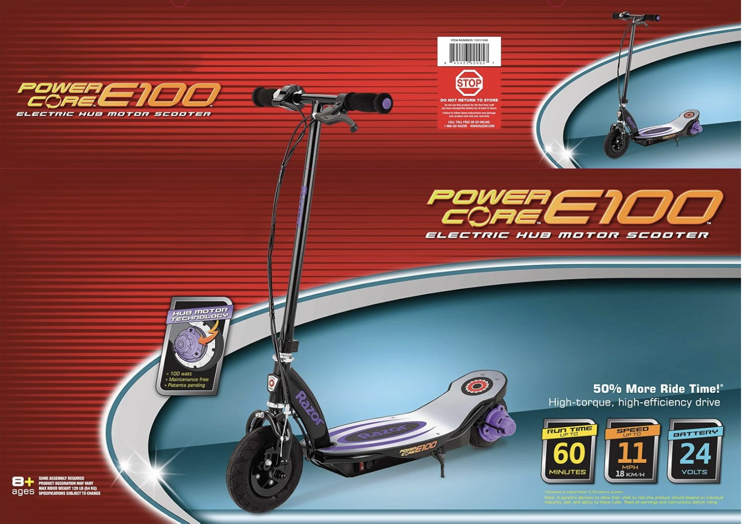 Scooter eléctrica Razor Power Core E100 Morado con negro