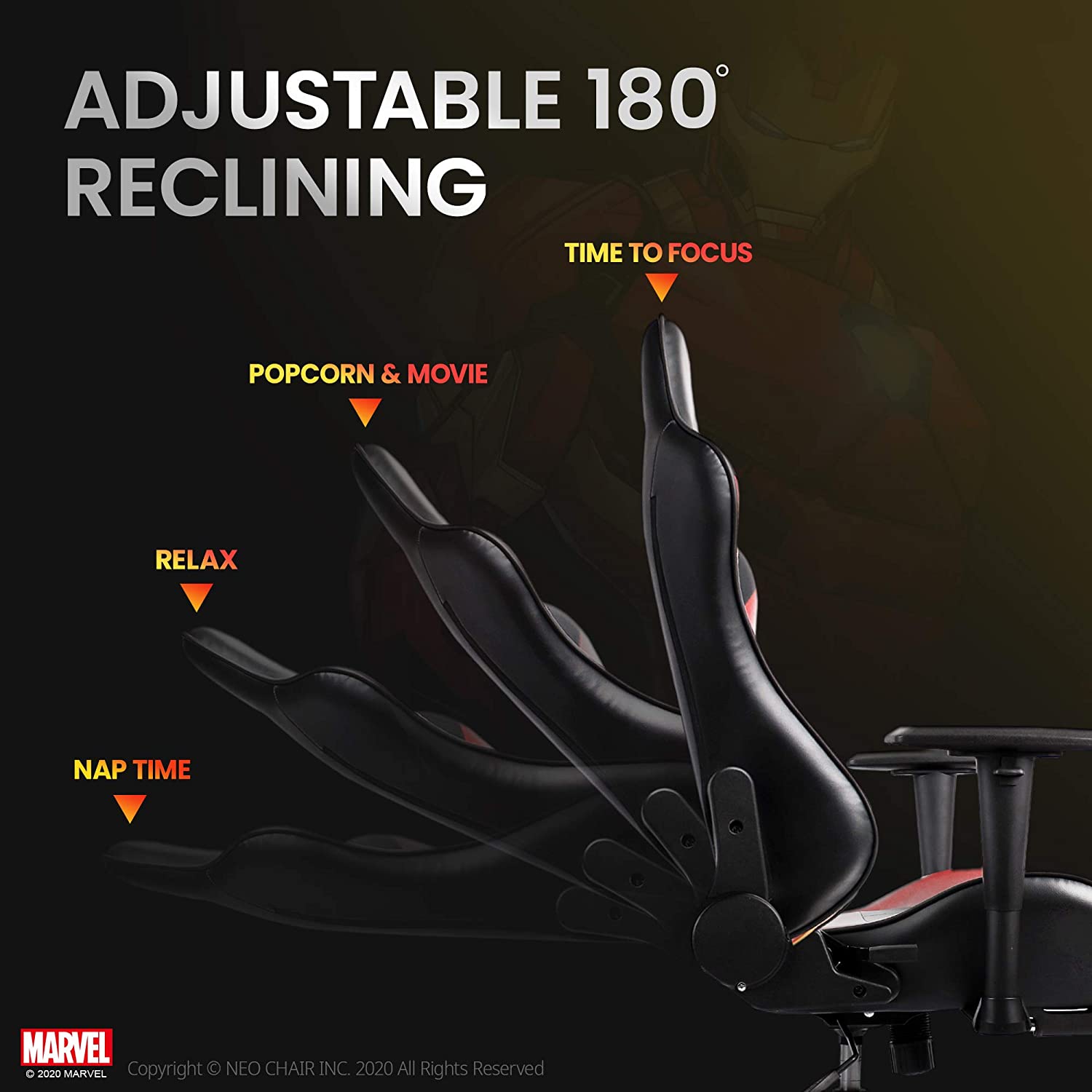 Silla de escritorio de los Vengadores de Marvel para juegos de mesa de oficina y de carreras de ordenador Iron Man
