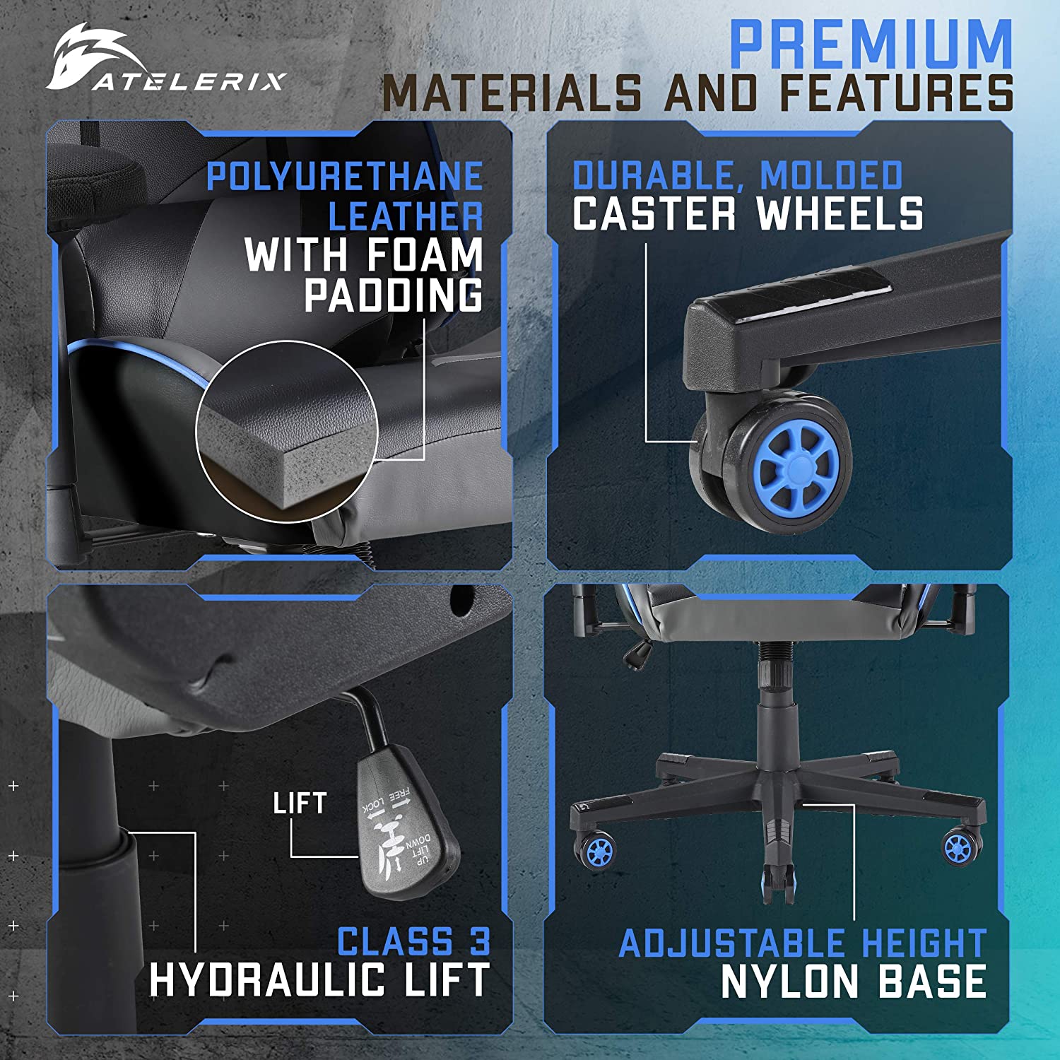 Silla Gamer Atelerix Ventris – Silla de juego de piel sintética, tela y opciones extra anchas – Silla de oficina o computadora – Silla de juego giratoria ajustable y ergonómica con reposabrazos cubiertos 4D, reposacabezas y soporte lumbar