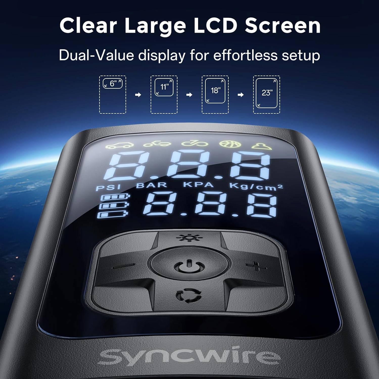 Syncwire Compresor de aire portátil para inflado de neumáticos, inflado 2 veces más rápido, bomba de aire inteligente para neumáticos de automóvil [LCD extragrande] con medidor de presión digital