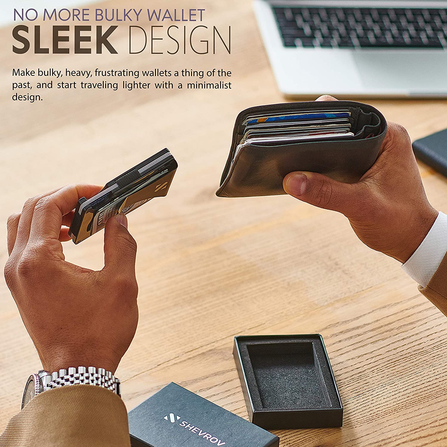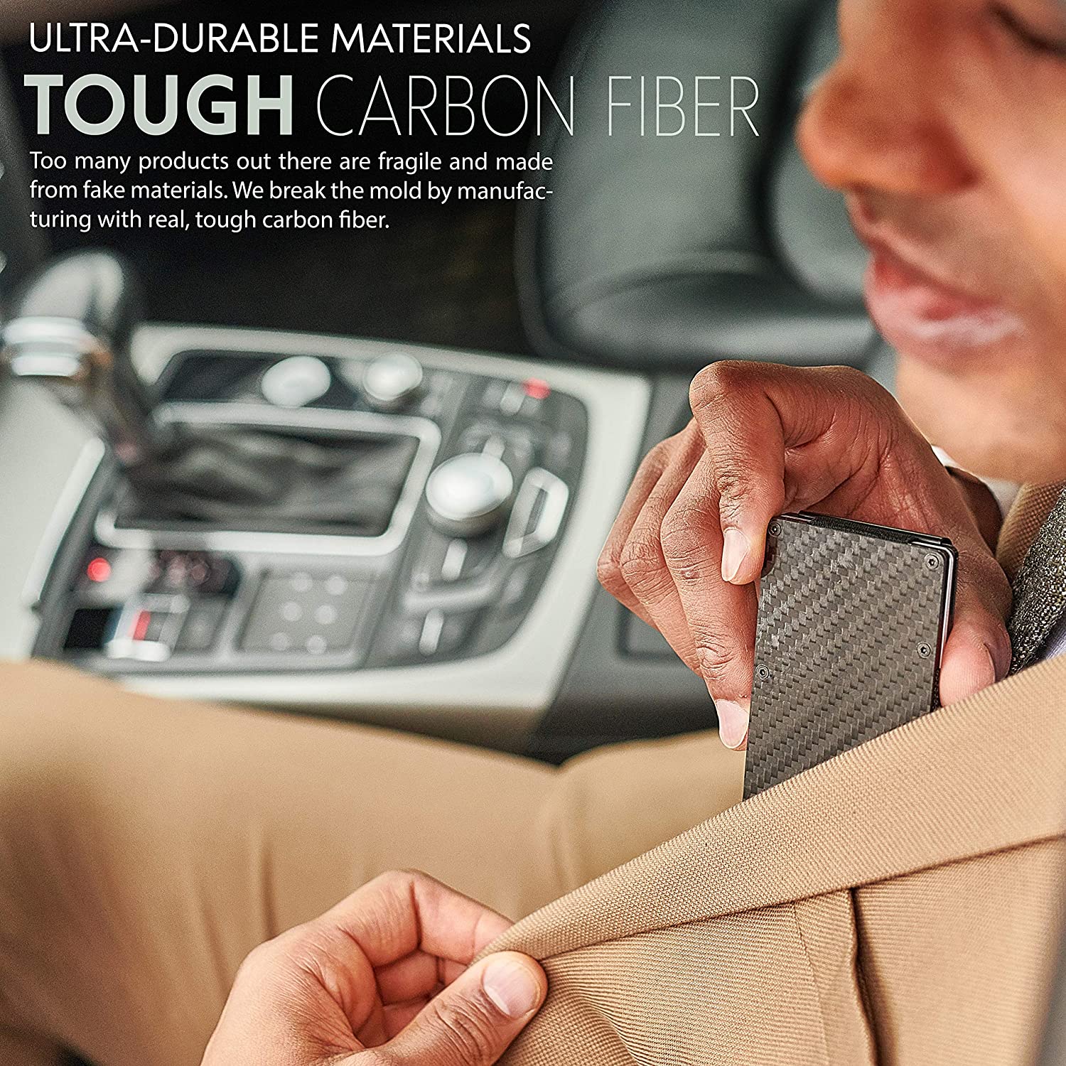 Tarjetero – Cartera con clip de fibra de carbono, cartera de aluminio para tarjeta de crédito con RFID, para hombre, minimalista, delgado soporte de tarjeta de crédito