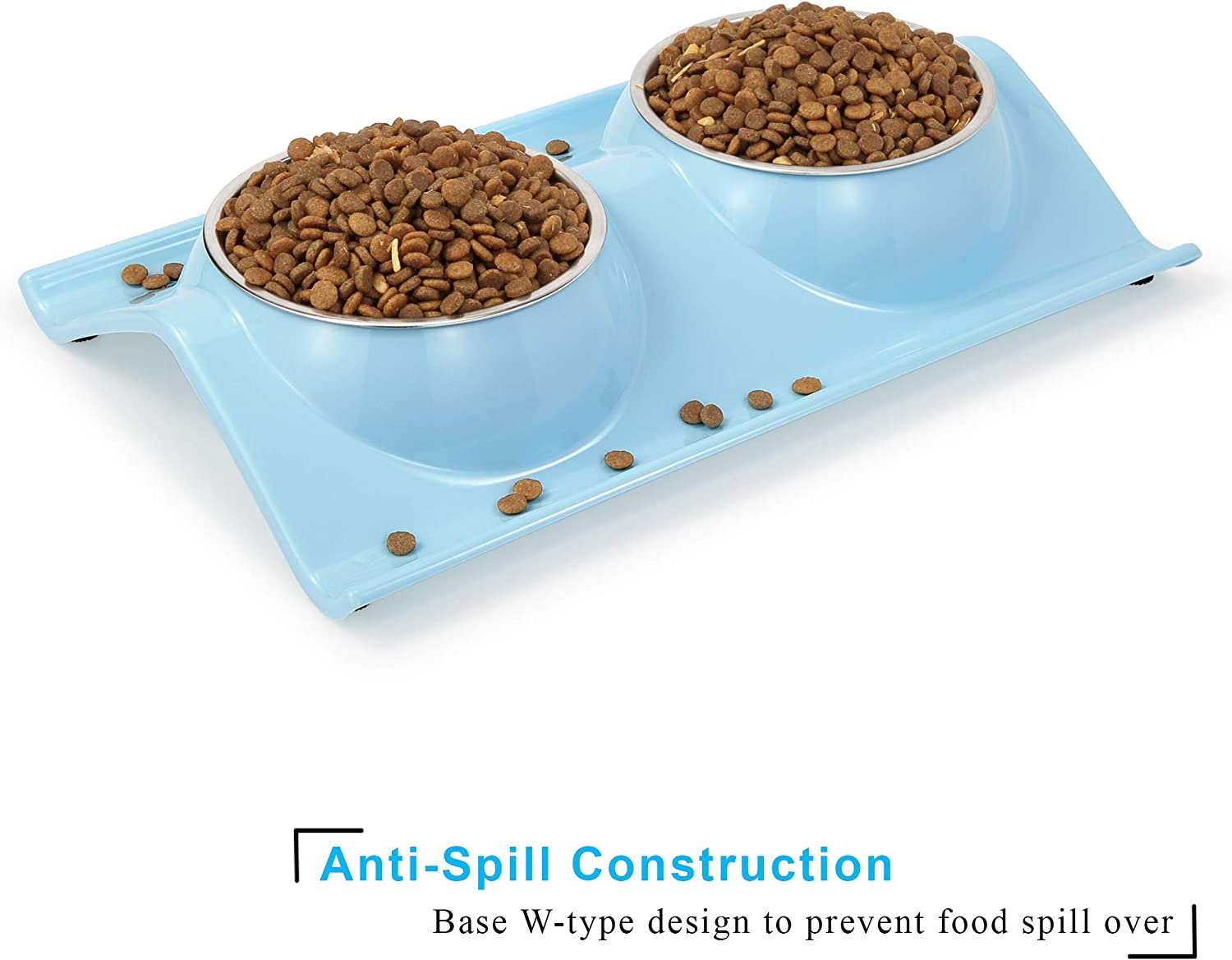 Tasa de comida para perros y gatos, cuencos de acero inoxidable de alta calidad para mascotas, estación de resina sin derrames, alimentador de agua para alimentos, gatos y perros pequeños (azul lago)