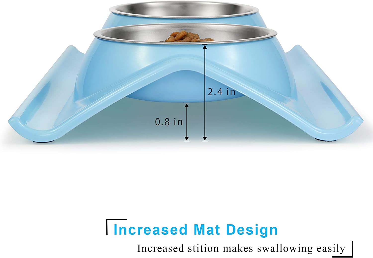 - Reduce la carga del cuello: aumenta el diseño de estación de 0.8 pulgadas de alto hace que la mascota tenga un acceso más cómodo para obtener alimentos y agua, lo que promueve el flujo de alimentos desde la boca hasta el estómago y hace que tragar fácilmente.