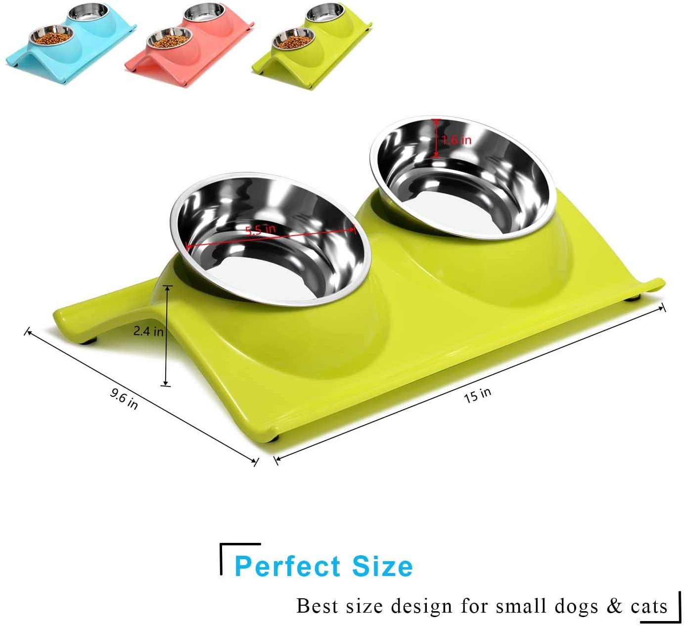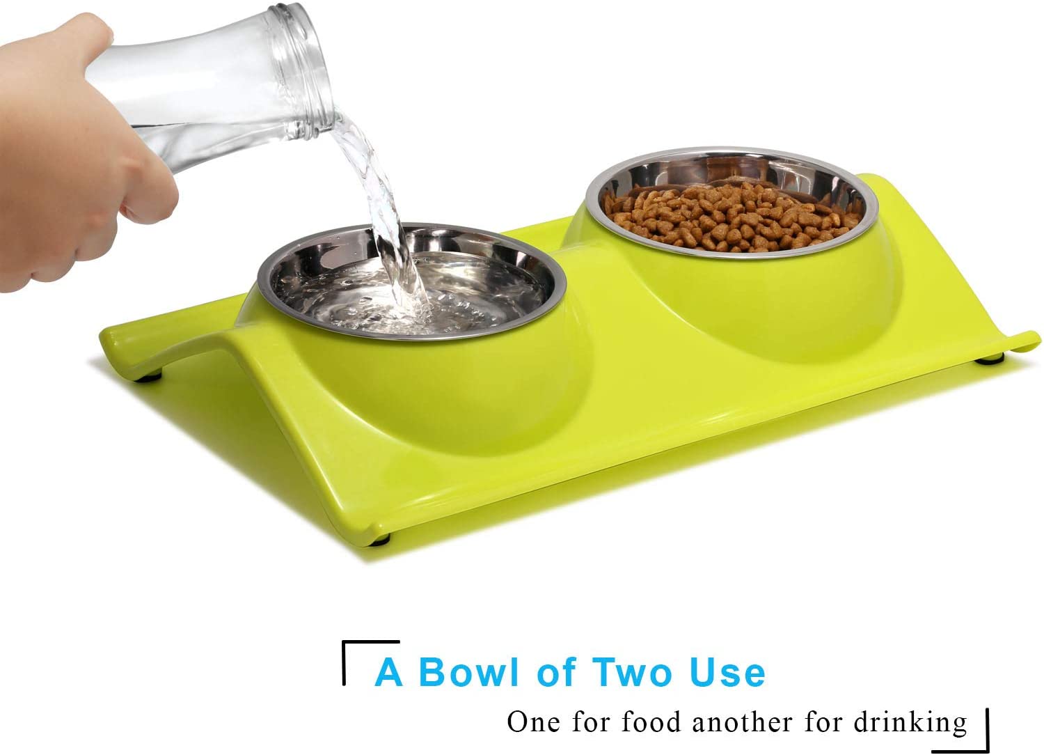 - DOUBLE BOWLS – This pet diner has set of 2 bowls and each is 11 oz. double stainless steel dog bowls set for feeding food and water, which is best for small dogs and cats.
