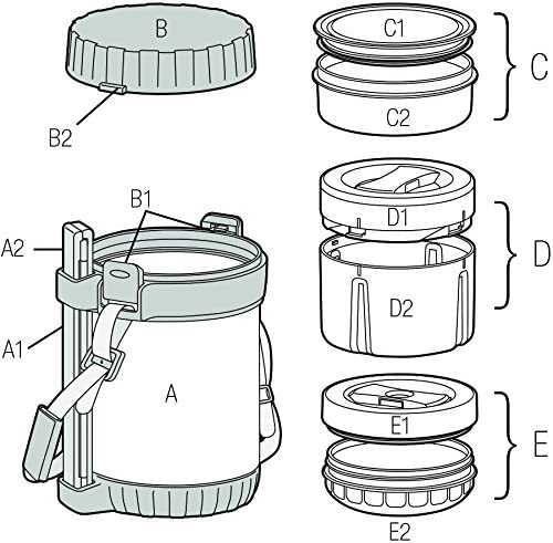 - Juego incluye: un portador de acero inoxidable aislado al aspiradora, recipientes de tres (3) en los siguientes tamaños: 235 ml, 13.5-ounce y 20-ounce, y una cuchara de acero inoxidable de tamaño completo en una cubierta de plástico