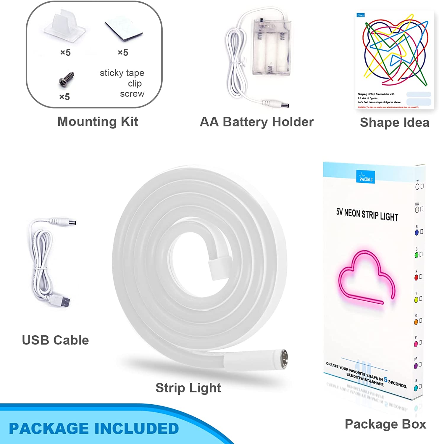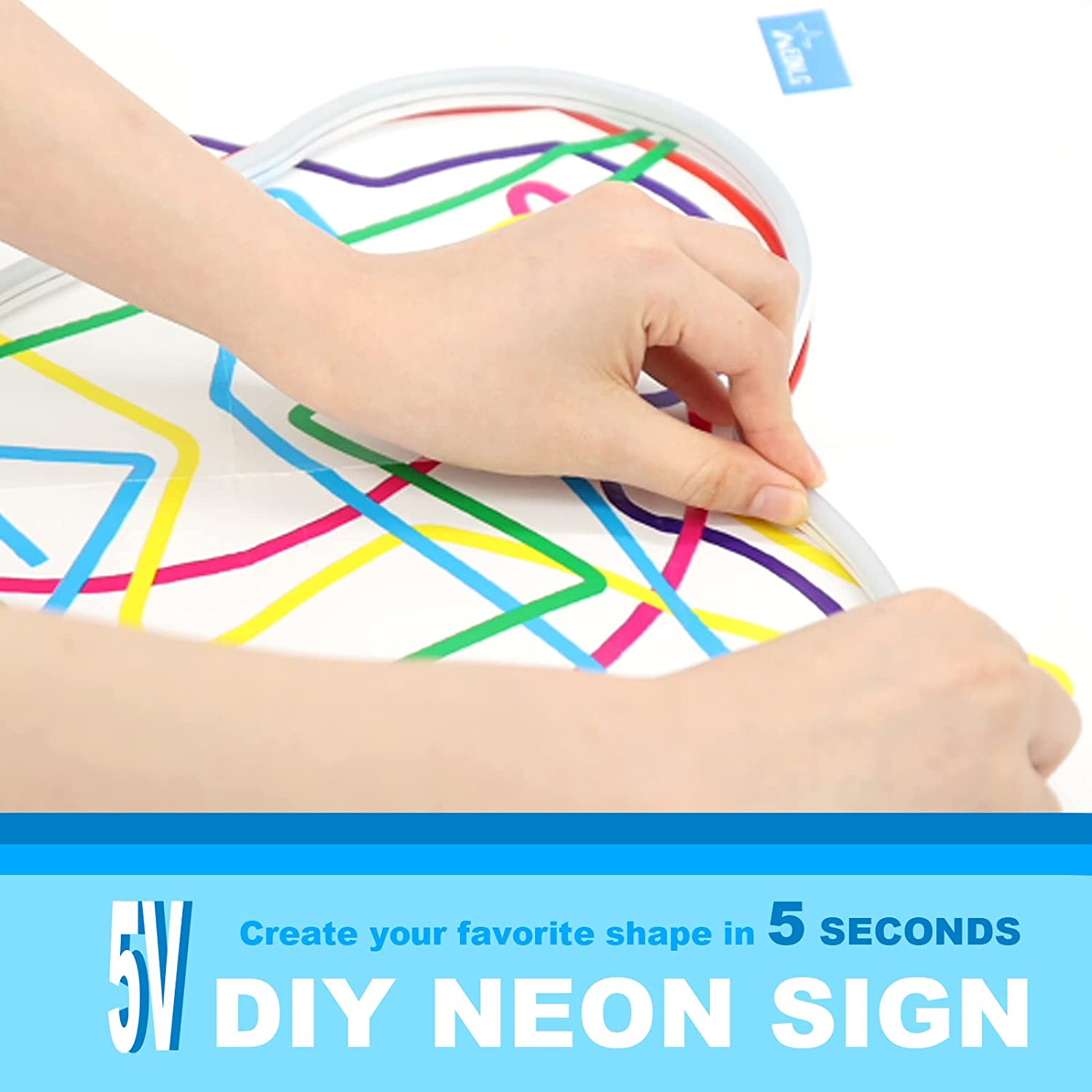 - ★ Bonito diseño de bricolaje: las tiras de luz de neón integradas en alambre de hierro de memoria, creando tu forma favorita en 5 segundos. Se incluye un patrón de línea simple para referencia. Con esta luz LED de neón moldeable, tus opciones son ilimitadas. ¡Empecemos tu imaginación sin fin!