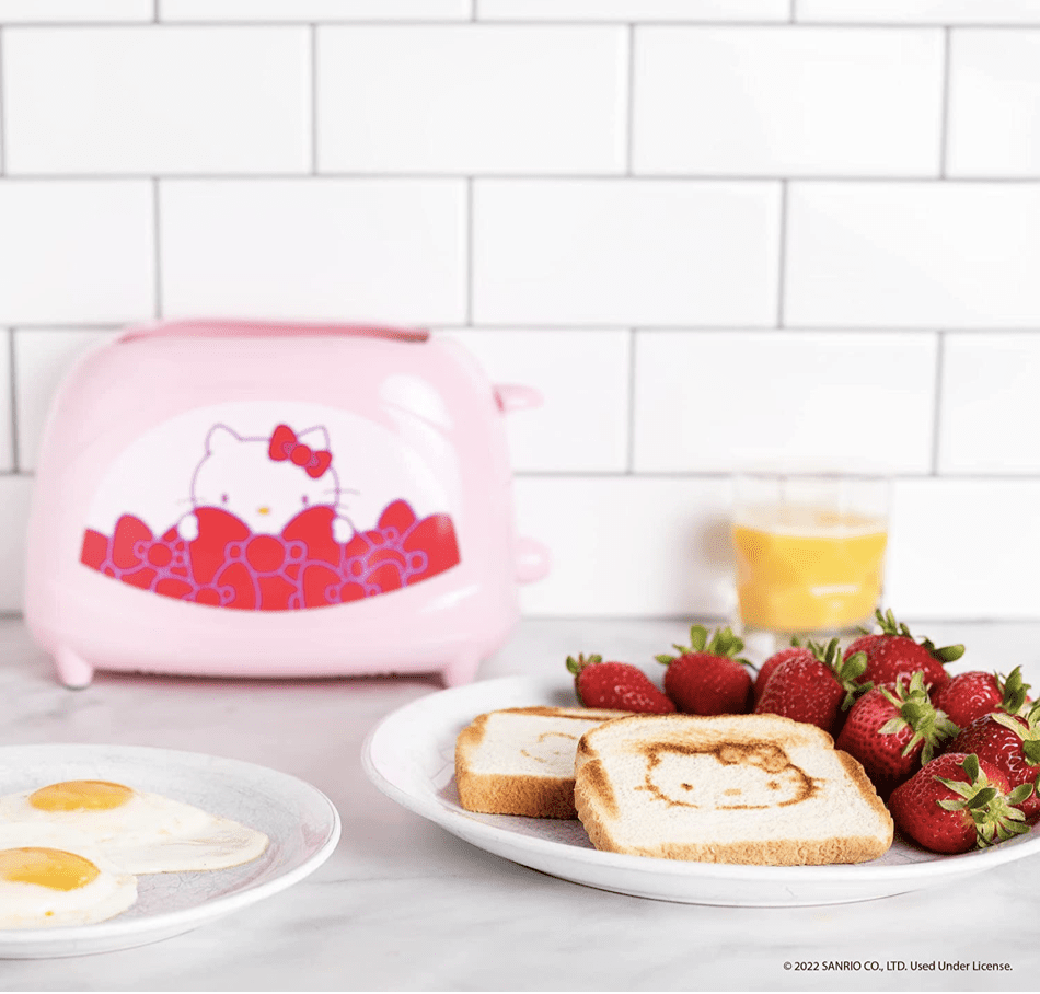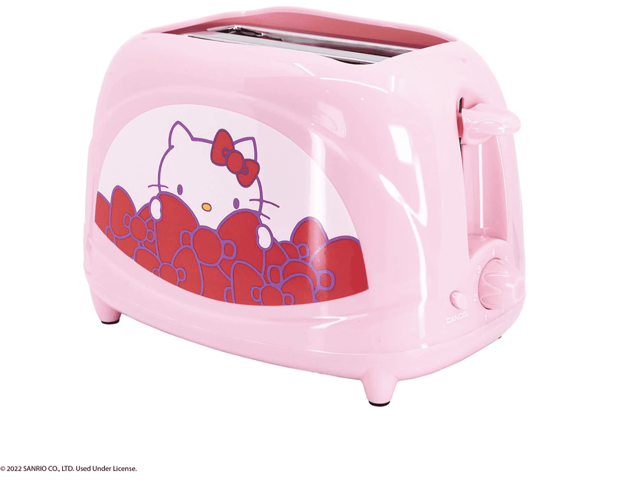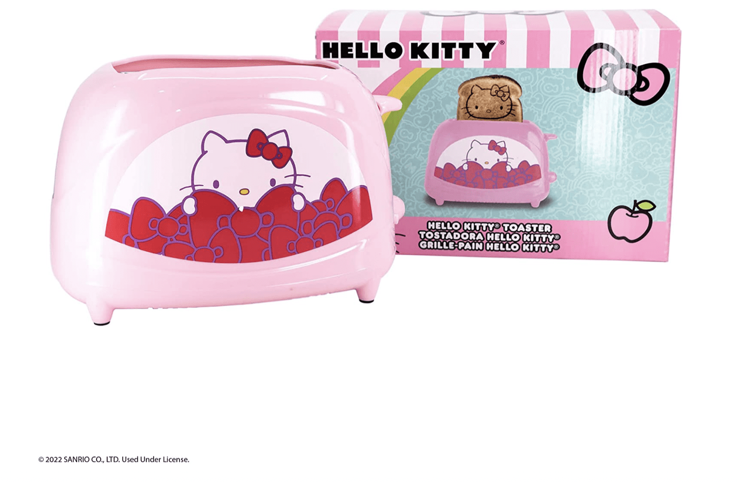 - Tostadora Hello Kitty – Haz tostadas de Hello Kitty en casa. Deja caer el pan en las ranuras, presiona la palanca y antes de que lo sepas, abre tostadas con la cara de tu gatito favorito.