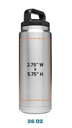 - La tapa Chug no está es para usar con bebidas calientes. Dimensiones de la botella: 10 1/2 pulgadas de alto, 3.5 pulgadas de diámetro.